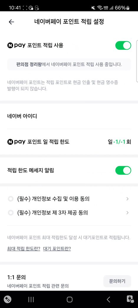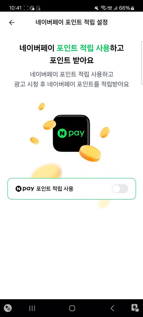 게임에서 네이버페이포인트 얻을 수 있다고광고하길래 그냥 테스트 겸 한 번 본 건데 계정을 연동하라고 하네요.. 광고성 적립? 그런 쪽인 것 같긴한데말이죠..( 사진엔 포인트 적립사용 체크한 걸로 나오지만 저 화면에서 체크하는게 아니라 원래는 바로 아래 사진으로 넘어가요. 아직 동의는 안 했습니다.)