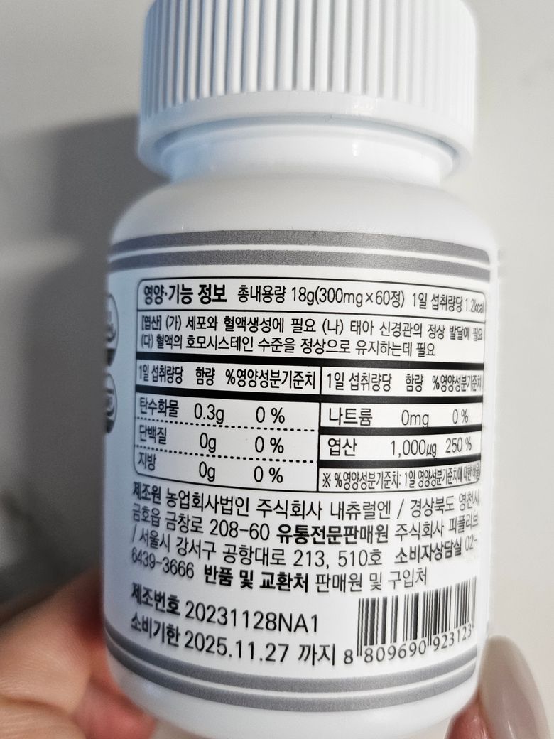 엽산 함량이 조금 낮은 제품으로 바꿔서 드시는 것을 추천드립니다