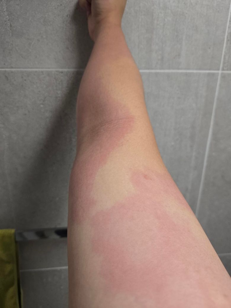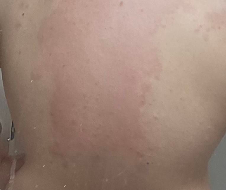 술을 마시면 사진과 같이 불규칙하게 반점이 올라옵니다. 몸에서 부터 팔 다리 순차적으로 발생하며, 사진보다 상당히 선명하게 나타납니다.