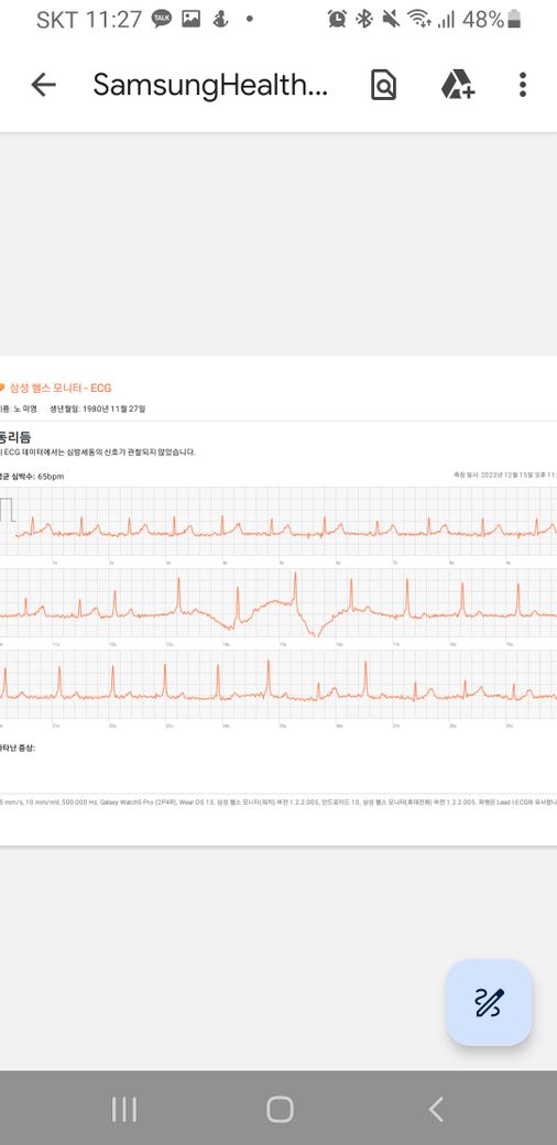 갤럭시워치 심전도를 찍었는데 저때 기분이 이상했거든요 왜저런걸까요