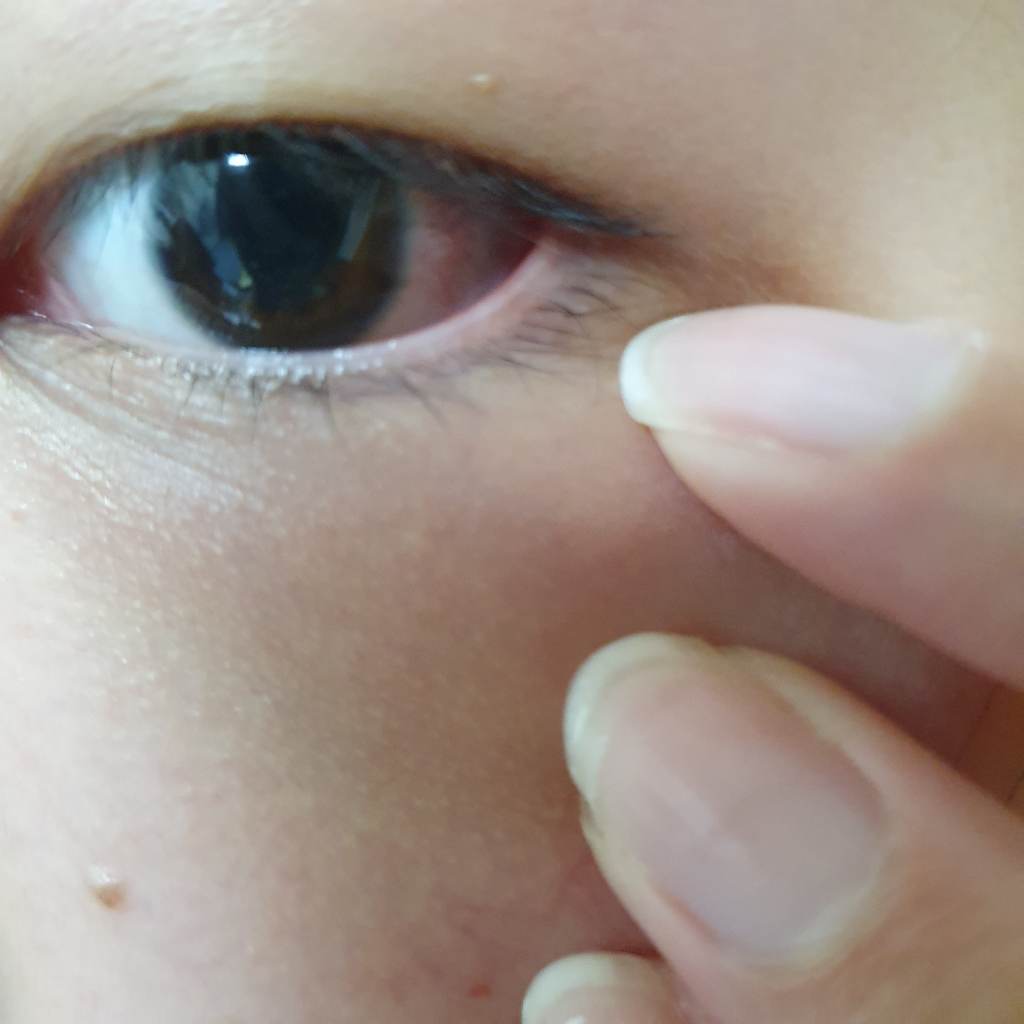 그런데 보니까 맞은 눈만 충혈이 생겨서요