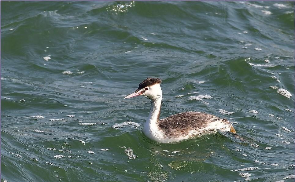 뿔논병아리는 논병아리보다 크고 머리에 뿔깃이 나있으며 고인 연못이나 늪지대, 깊게 흐르는 강이나 하천에서 살지만 짠 바닷물에서도 사냥을 나서잖아요.
