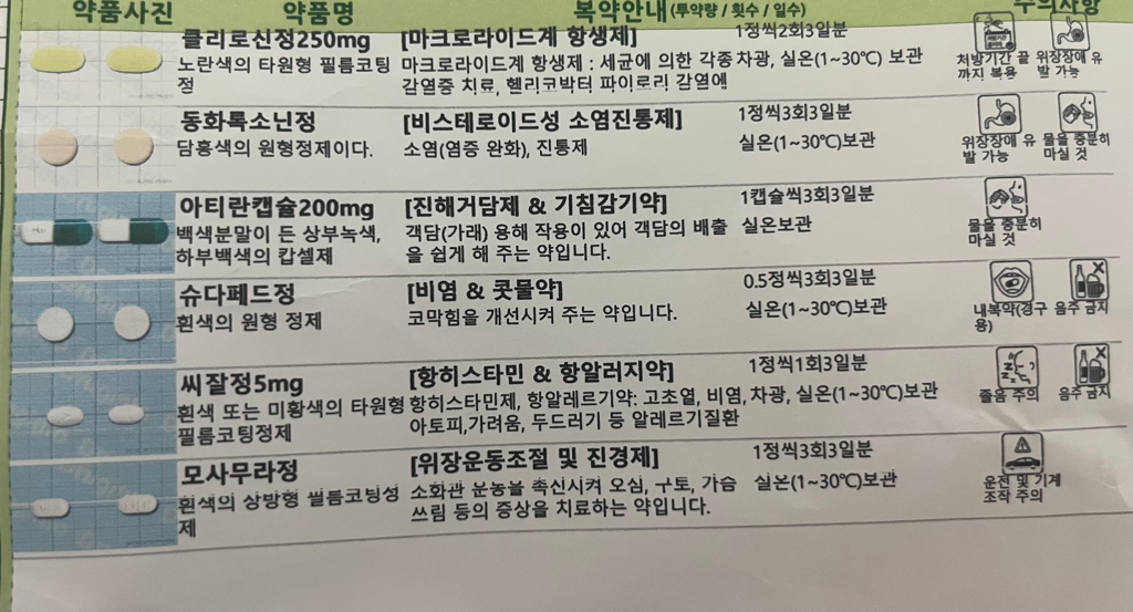 첫번째에 있는 클리로신정250mg는 항생제이기때문에 피임약 효과가 떨어질 수 있어요.
