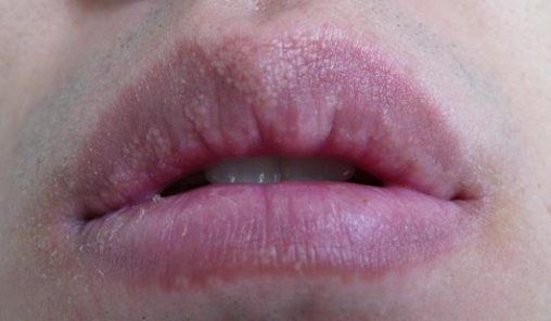 입술에 하얀색 반점이 나타나기 시작했습니다.