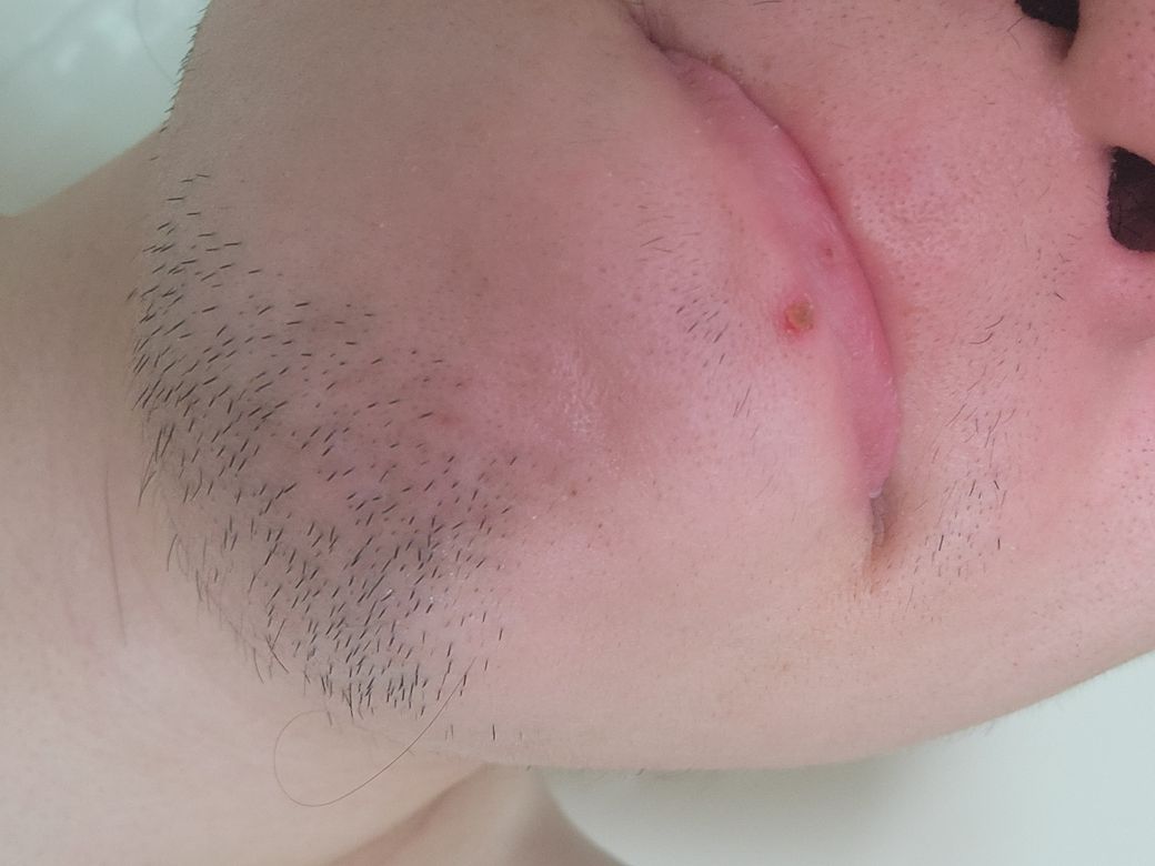안녕하세요. 채홍석 의사입니다. 입술 헤르페스 가능성이 있겠습니다. 전염 가능성은 있습니다.