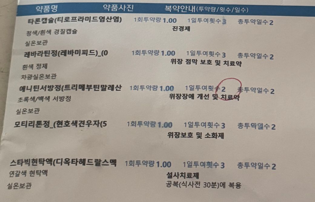 항생제는 보이지 않으니 바이러스성 장염을 고려하시고 처방하신 것 같습니다.
