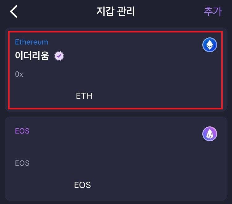 2. 아래 그림에서 삭제하고자 하는 지갑을 선택합니다.