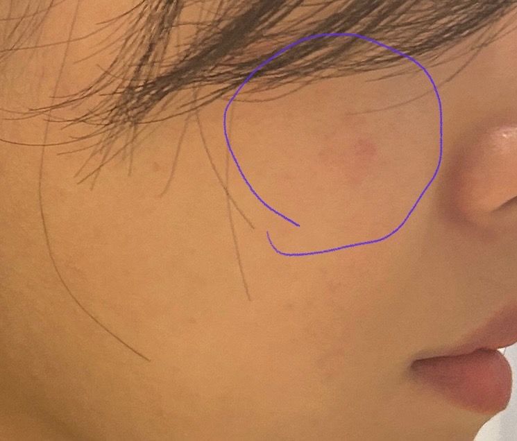 볼에 작은 붉은자국이 생겼는데