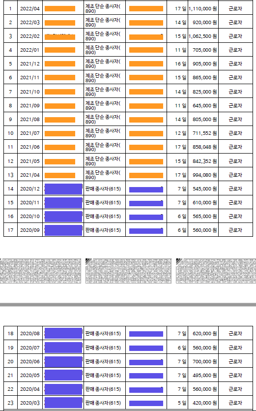 현 시점에서 고용 보험 내역 조회해보니까 사업장 명 바뀐 내역이 22.04까지 나와있고