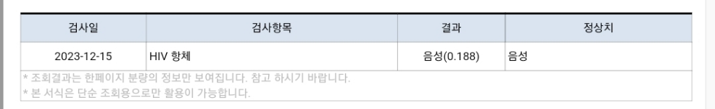 HIV 검사에서 사용되는 수치인 "0.188"은 해당 검사의 결과를 나타내는 지표, 즉 '컷오프 값(cut-off value)'보다 낮은 결과입니다. 보건소나 의료기관에서 시행하는 HIV 항체 검사에서는 특정 항체가 혈액 내에 존재하는지를 측정하여 결과를 나타내는데, 이때 특정 기준값(컷오프 값)을 설정하고, 이 기준값 이하일 경우 '음성'으로 판정합니다. "0.188"이라는 수치는 이 기준값보다 낮아 음성으로 판정된 것을 의미하며, '등급'을 의미하는 것은 아닙니다.