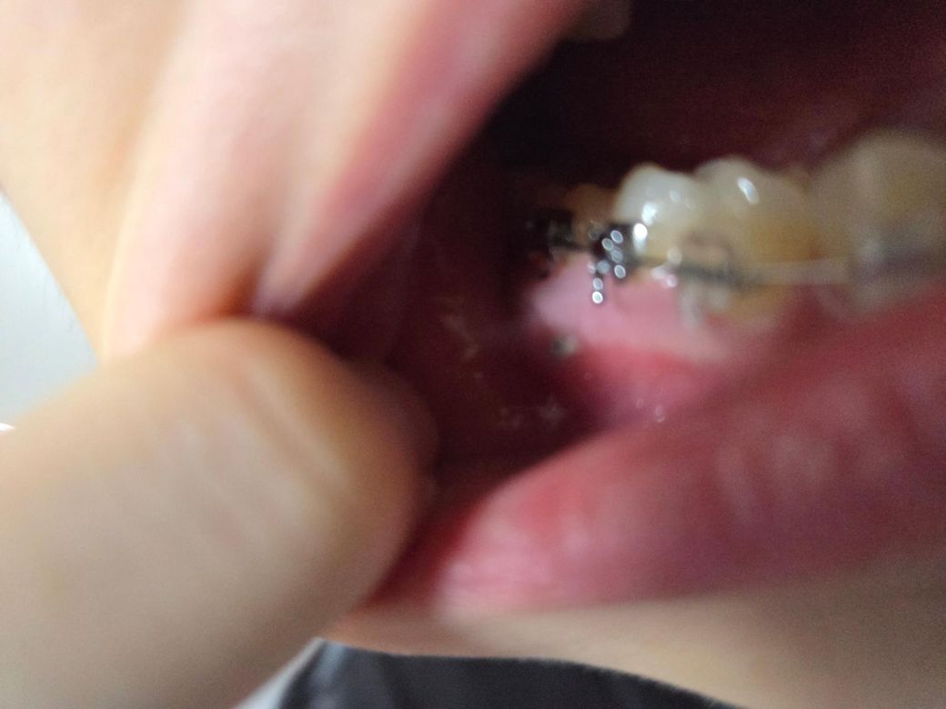 교정스크류 식립하고 위에 하얀 막이 생겼어요