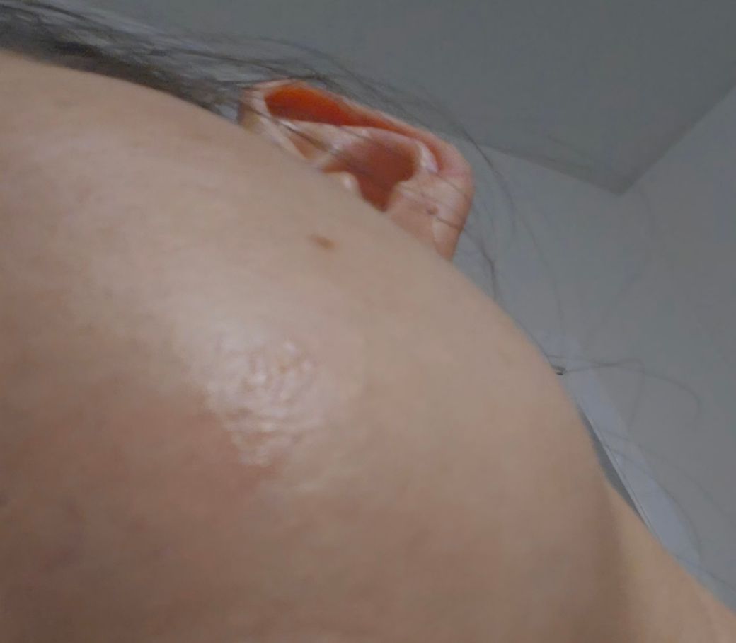 일시적인 피부 트러블, 피지낭종, 접촉성 피부염의 가능성을 고려하는 것이 더 합리적일것 같습니다.