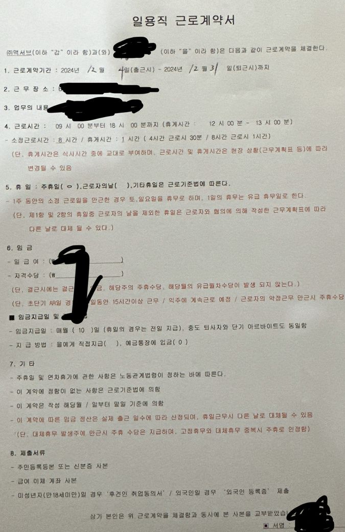 상용직 근로 계약서가 아닌 일용직 근로계약서인게 조금 걸립니다..