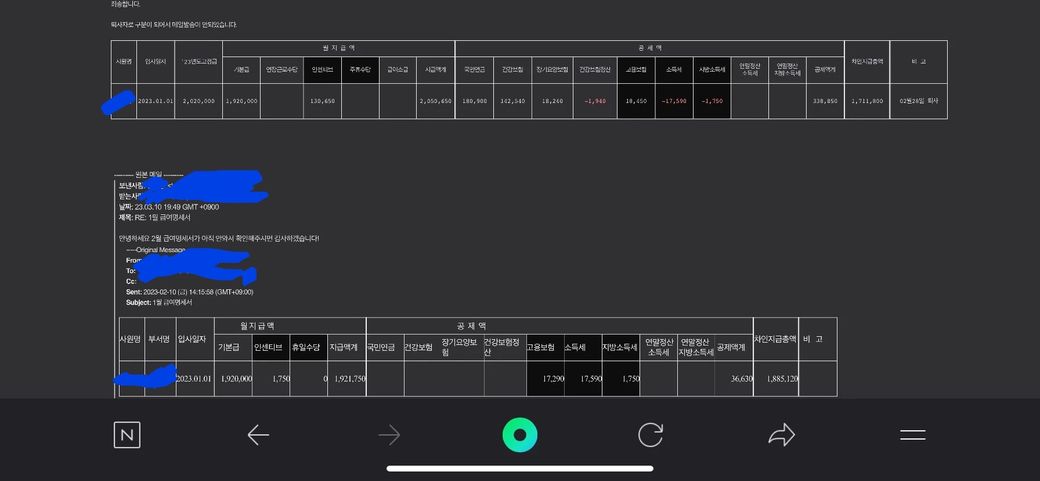*참고로 사진상의 밑에 급여명세표가 1월달분 급여분이고