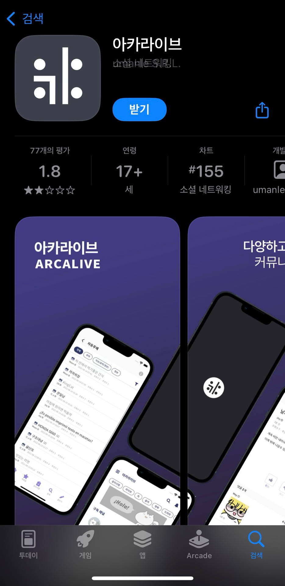 아이폰 앱스토어에서 아카라이브 어플 방금 검색해봤는데 있어요~!