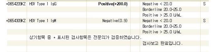헤르페스1형 양성 수치 의미가 있나요?