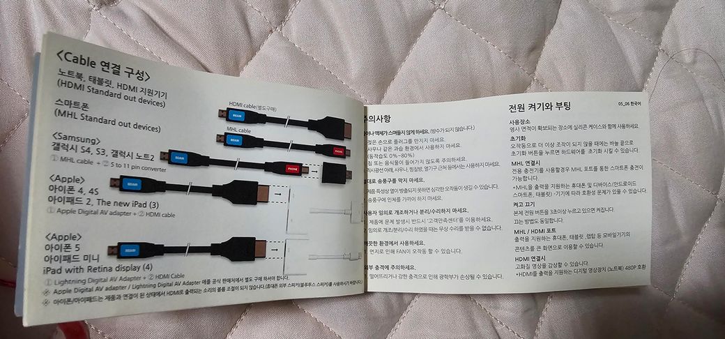 한쪽은 5핀 한쪽은 hml케이블? 5핀보다는 옆으로 짧고 두꺼운 건데요