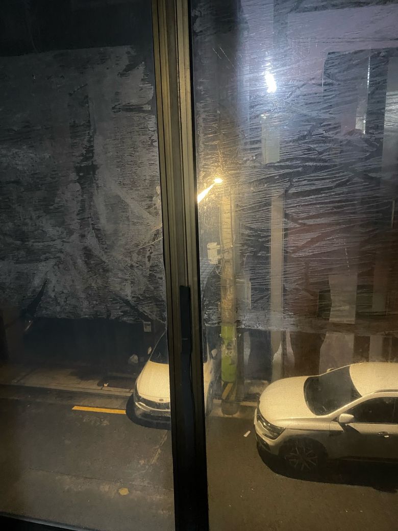 사진처럼 유리 표면이 하얗게 얼룩지고 질감이 남아 있는 경우는 오래된 접착제나 보호필름 잔여물이 굳어 있는 상태라서 퐁퐁이나 일반 세제로는 절대 제거되지 않습니다.