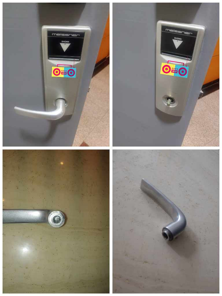 사진을 보니 처음에 조립시 잘못조립된 상태로 강제로 조립하다가 나사산이 나간갓으로 보입니다 도어락을 다시 구매하시거나 도어락 업체에 AS를 받아보시길 추천 드립니다