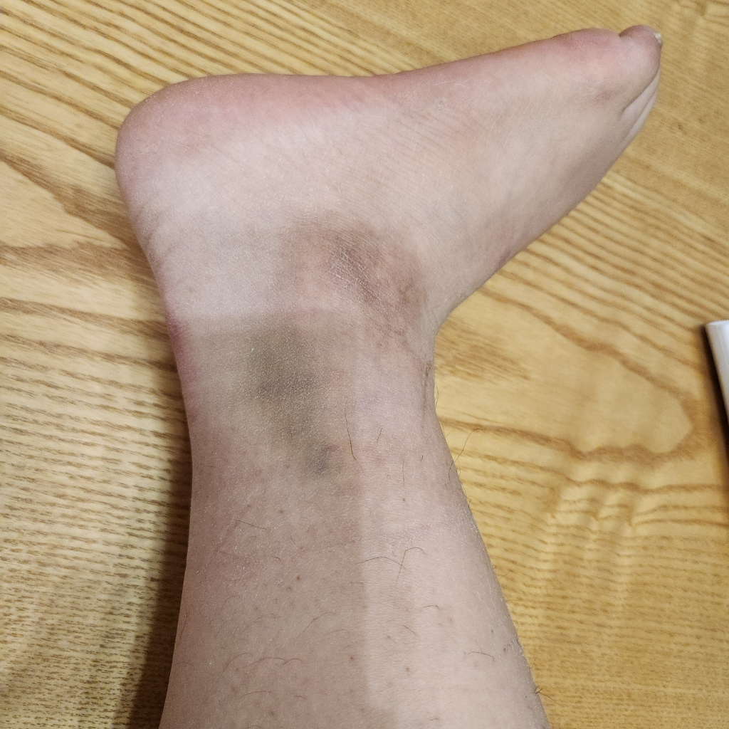 근데 삐끗하면서 윽...소리가 났습니다. 그 이후로 출근해서 압박붕대를 감아주고 이제야 풀렀는데 저렇게 멍이 들어있습니다.