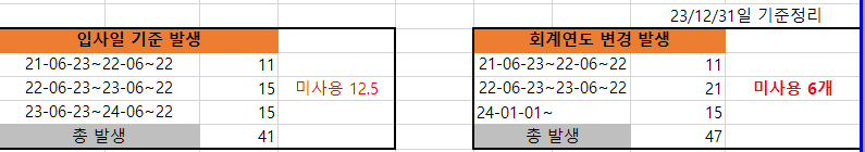 결론적으로 기존에 사용하고 남은 12.5개분의 연차를 사용할 수 없다는 건가요?