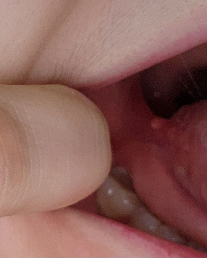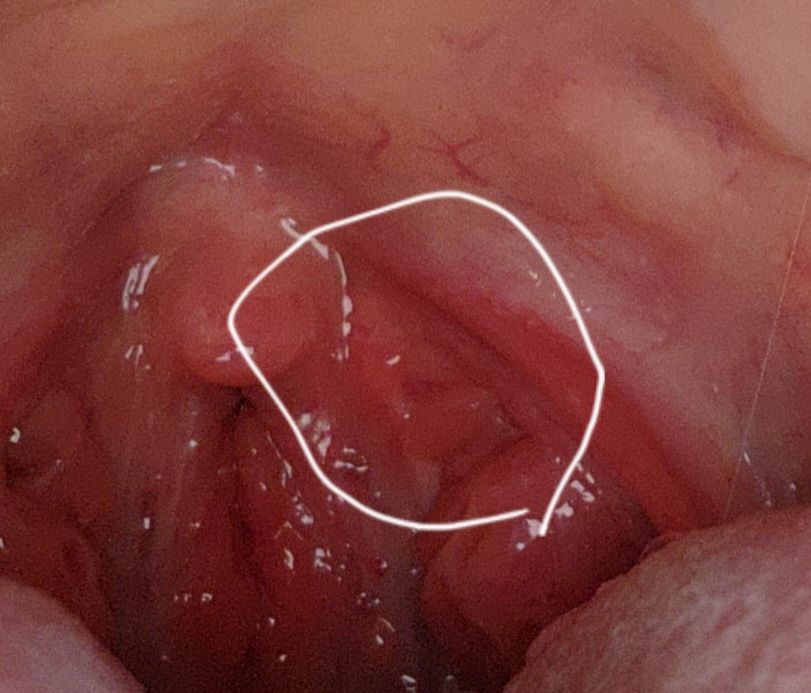 우선 악성종양등의 가능성이 높지는 않아 보입니다. 구강점막도 점막의 일종이며 양성 돌기나 작은 용종이 생길수 있어 단순한 양성 종양의 가능성이 높아 보입니다. 정확한 판별은 이비인후과적인 조직검사를 통해 알수 있겠습니다.