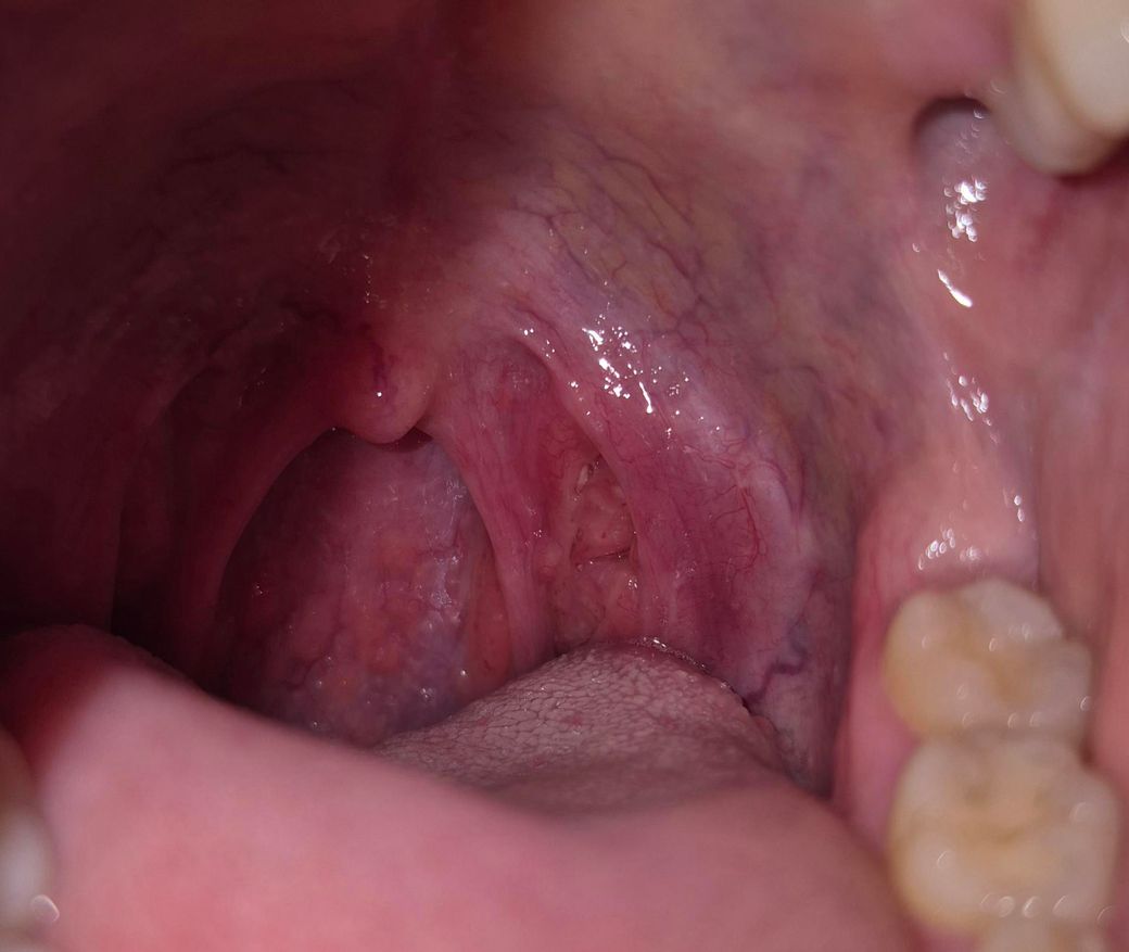 질문이 정확히 어떤것인지는 모르겠으나 사진에 대한 것이라면 5번째 사진을 기준으로 보았을 때 좌측 편도 아래측에 약간의 흰 삼출물이 보이며 삼출물은 염증이 있음을 시사합니다. 편도 윗부분에 파인 부분 안에 있는 흰 부분은 편도결석 가능성이 있습니다. 불편하신게 있으시면 가까운 내과 이비인후과 등에서 진료 보시면 되겠습니다.
