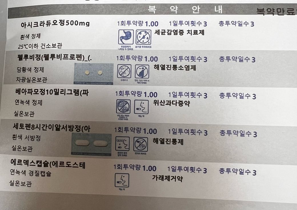 다만 1회 용량상 타이레놀을 2알씩 복용이 가능하므로 위 처방약에 타이레놀 1정은 추가 복용 가능하겠습니다.