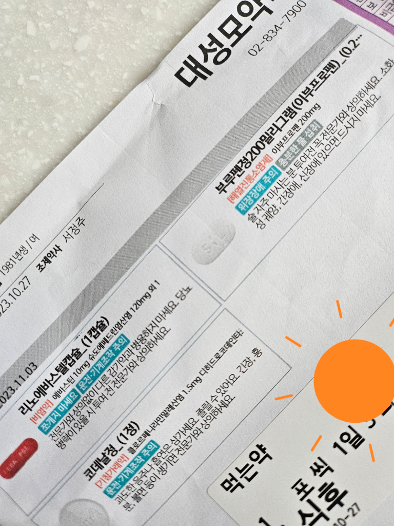 처방전에 나와있는 약제중에 부루펜정이 미열과 두통에 효과가 있는 약입니다. ///////