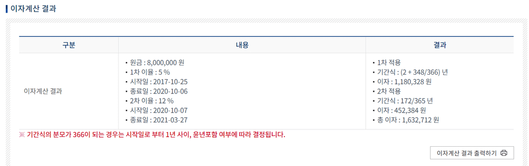 위 대한법률구조공단의 계산기로 계산하였을 때는,