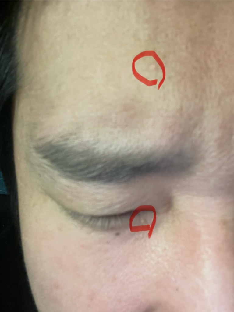 얼굴에 나는 비립종이나 피지 낭종으로 보이며 특별히 문제를 유발하는 것은 아닌데