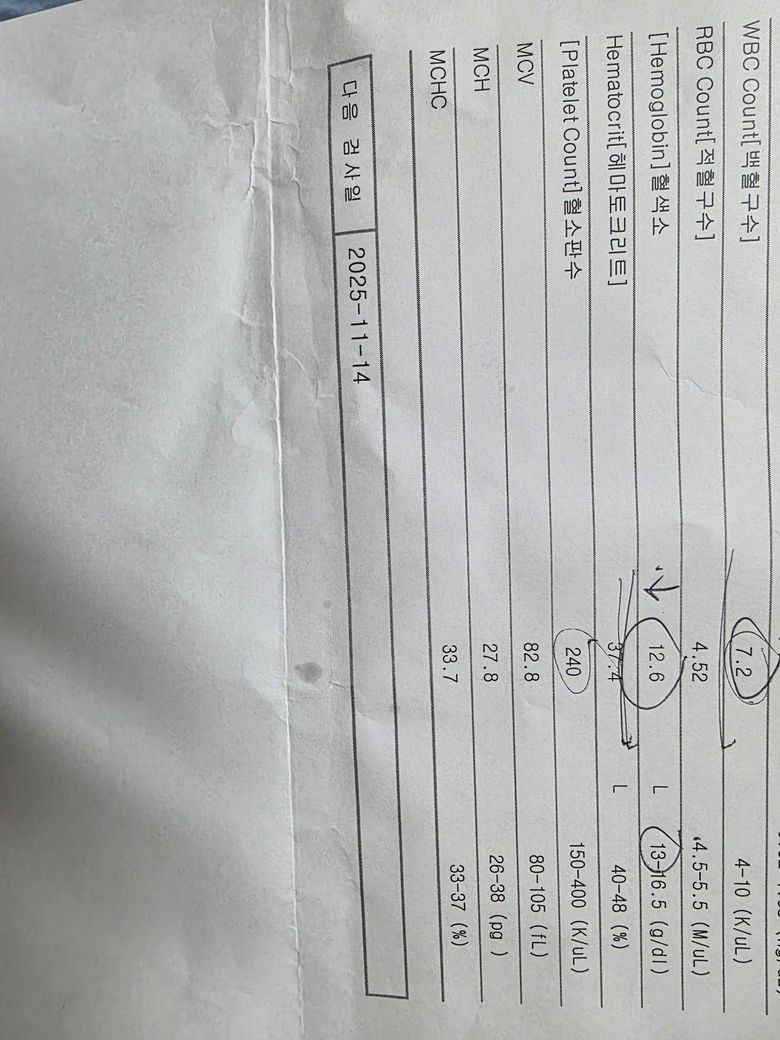 오늘 중1남자아이 빈혈피검사했는데요ㅠ