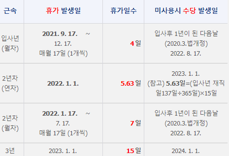 회사에 만 2년이하로 근무한 경우 15일 사용이어렵다는데 노동법규상 이게 맞는 건지 헷갈려 문의드립니다!