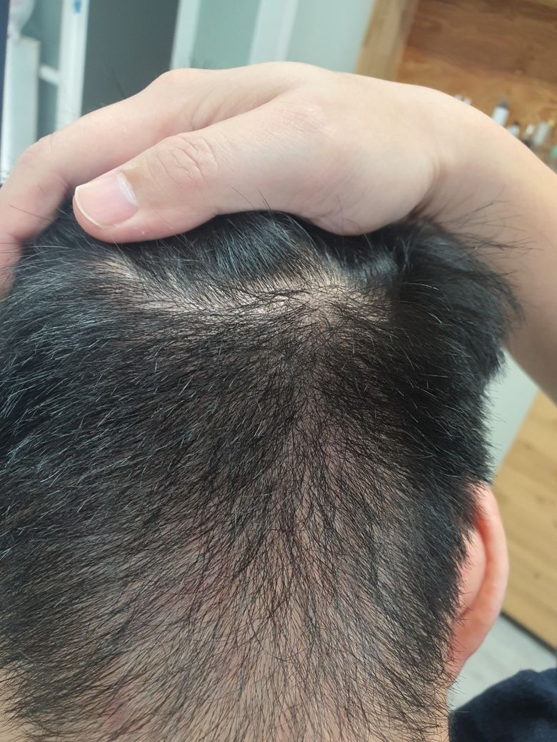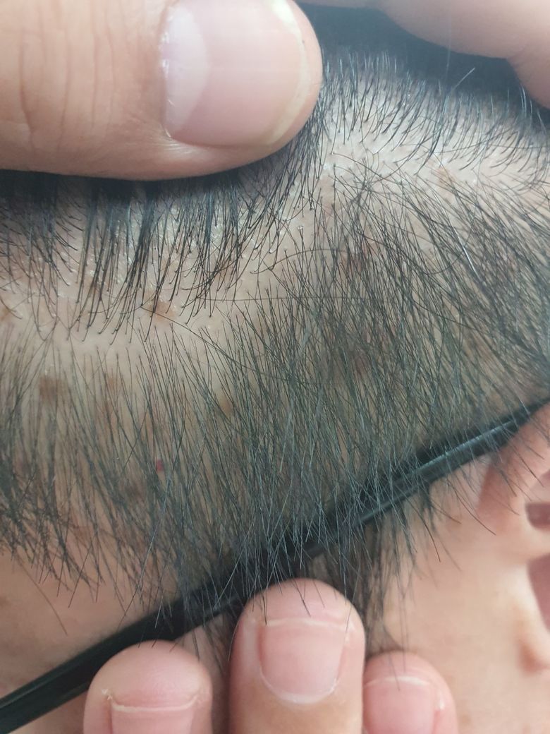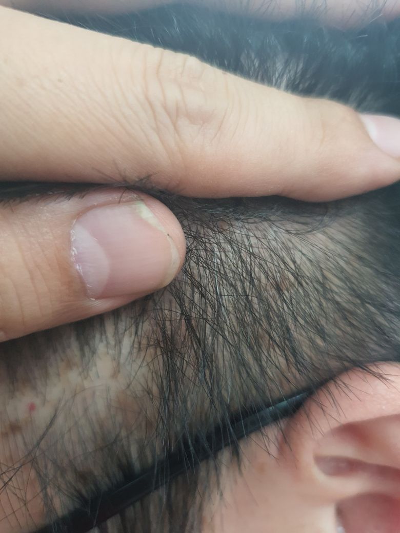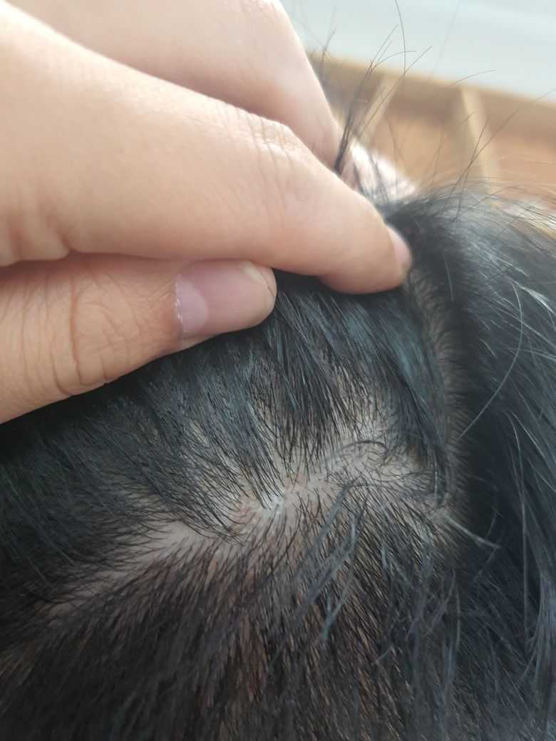 두피에 군데군데 염증이 생겼네요. 두피 여드름 가능성이 있겠네요