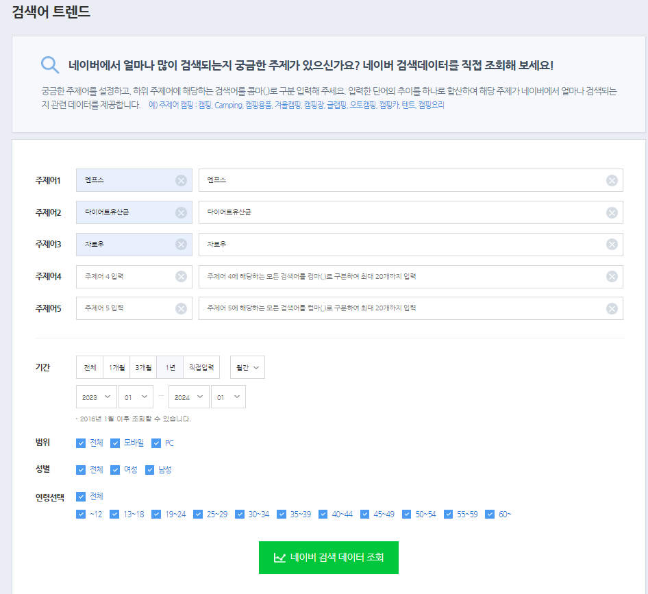 네이버 데이터랩에서 검색어량 검색이 안됩니다