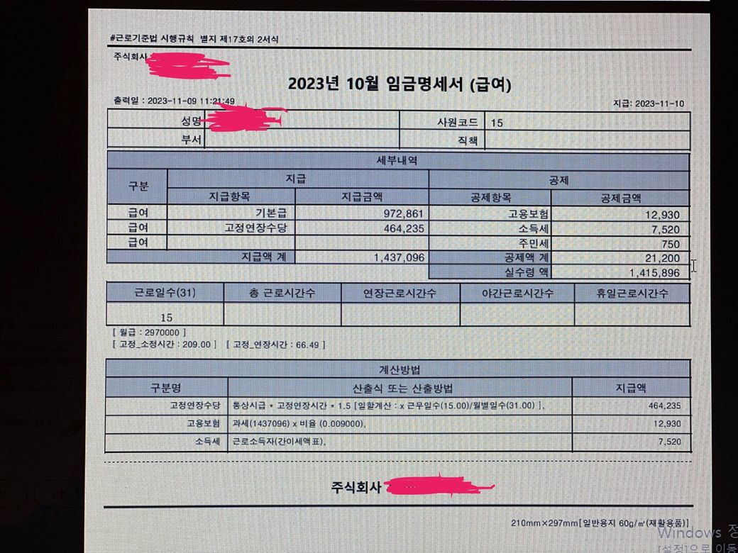 10/16~10/31일까지 일했는데 총 받은 급여가 1,415,896 수습기간이라고 최저시급으로 받았습니다.