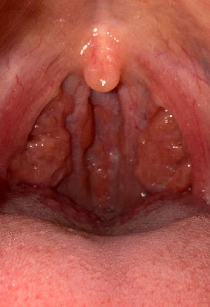 올려주신 사진상 양측 편도선의 비대가 관찰되는데 진단 기준에 따르면 중심선을 초과하는 정도는 아니므로 2단계 편도 비대증으로 판단할 수 있습니다. 편도 비대증이 있을 경우 급성 편도염이 자주 발생할 수 있고 염증이 지속되는 만성 편도염이 존재할 수도 있습니다. 현재 사진상으로는 발적이나 미란 삼출물과 같은 급성 염증에서 관찰되는 소견은 보이지 않아 급성 편도염이 있다고 보기는 어렵습니다. 부족한 답변이지만 도움이 되었기를 바랍니다.