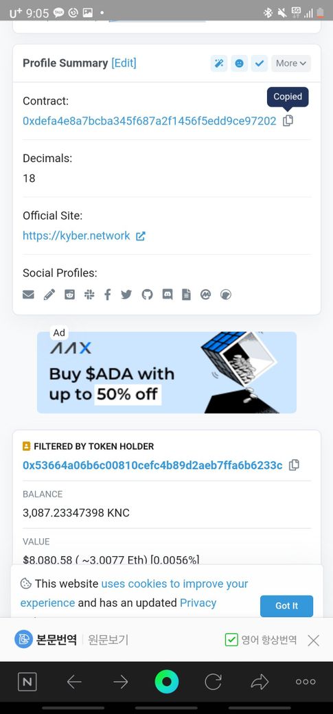 먼저 위 사진으로는 전송건에 대한 Contract 주소는 동일합니다. 때문에 받으실 카이버 네트워크의 입금 주소를 잘 입력하셨는지 다시한번 확인해보시길 바랍니다. 또한, 카이버 네트워크의 전송 속도는 사실상 매우 빠른 전송에 속하지는 않기 때문에 컨펌이 늦게 완료되는 경우가 있으며, 보내신 TXID를 계속해서 확인해 보시길 바랍니다.
