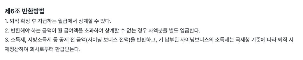 1년 다니고 퇴직하려고 하는데 반환 방법이 첨부한것처럼 지급하는 월급에서 상계된다고 기재되어있는데