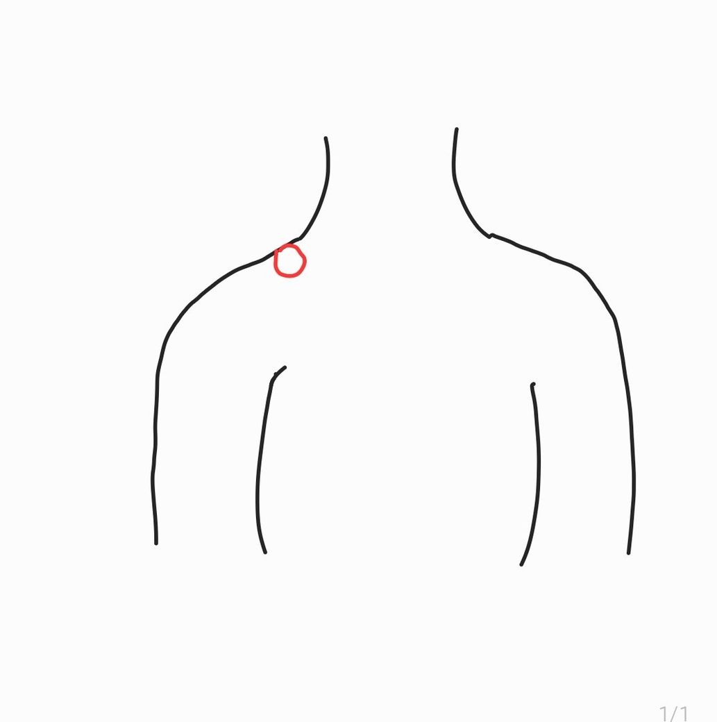그림에서 위치를 보았을 때는 승모근 부위의 통증으로 보입니다.