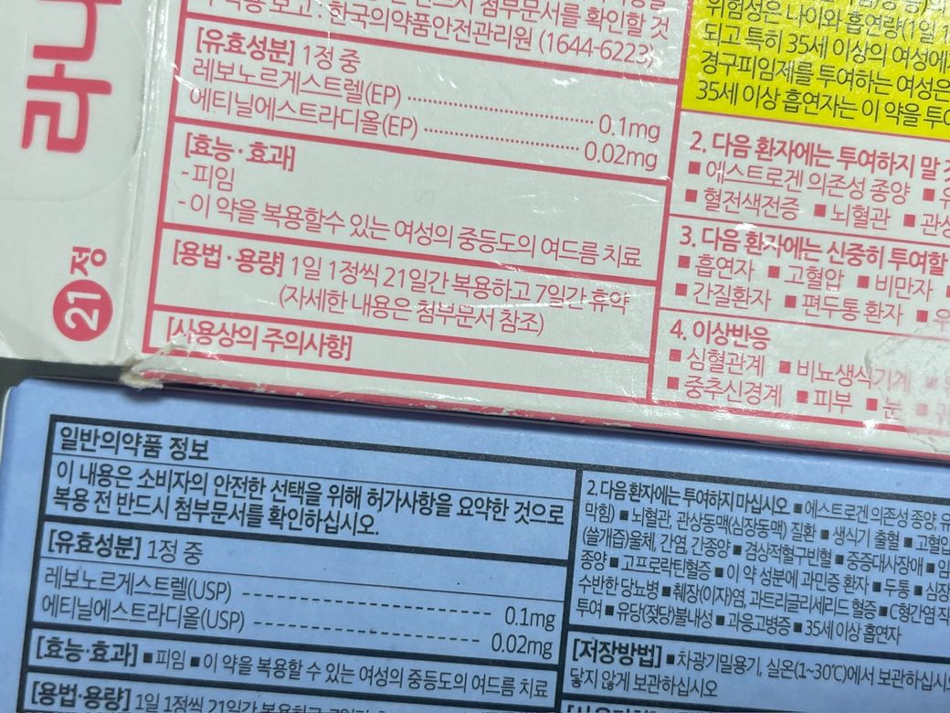 라니아정과 센스데이큐는동일한 성분의 약으로 혼합하여 복용을 해도 문제가 되지 않습니다. 토한 경우에는 약물이 흡수가 되지 않았기에 한알더 복용을 하는 것이 문제가 되지 않으며, 복용을 까먹고 한번정도 더 복용을 한 경우 호르몬농도의 변화 부정출혈이나 피임효과가 다소 떨어질수 있습니다.
