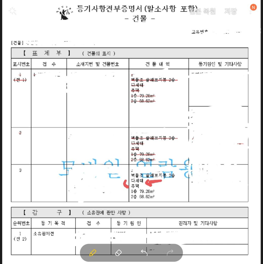 이 집 뿐인데 주택의 용도가 다세대로 되어있어서 찝찝하네요..