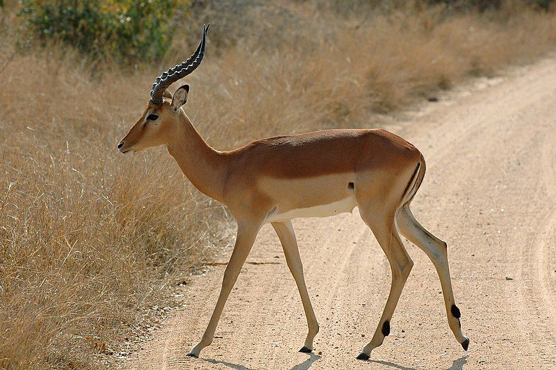 가젤과 임팔라를 구분하는 가장 쉬운 방법은 옆구리에 검은 줄무늬가 있으면 가젤이고, 검은 줄무늬가 없으면 임팔라입니다.