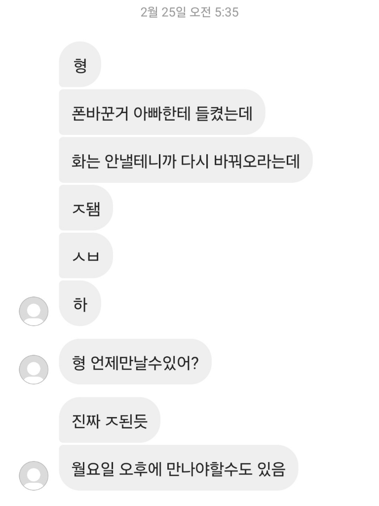 이건 그 동생이 저랑 아버지에거 동시에 거짓말하며 폰 바꿀라고했다가 다시 돌리는 겁니다