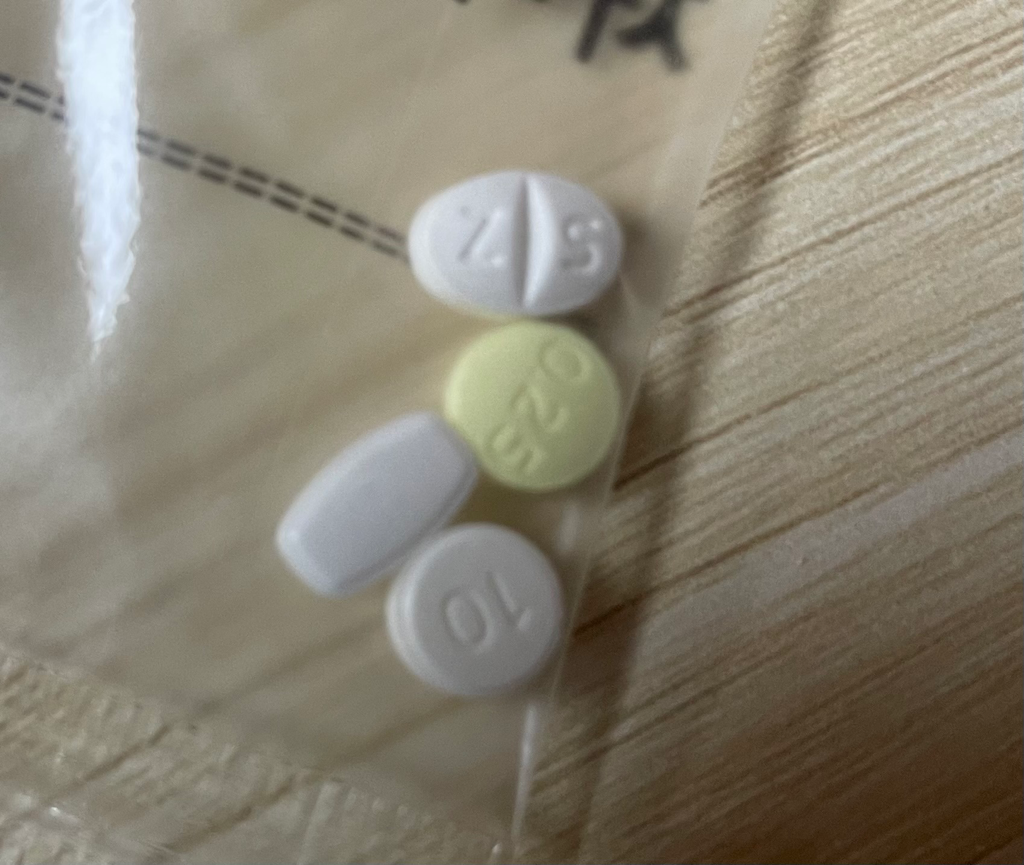 인데놀10mg, 데파스0.25mg, 산도스에스시탈로프람, 자나팜0.125mg으로 보입니다.