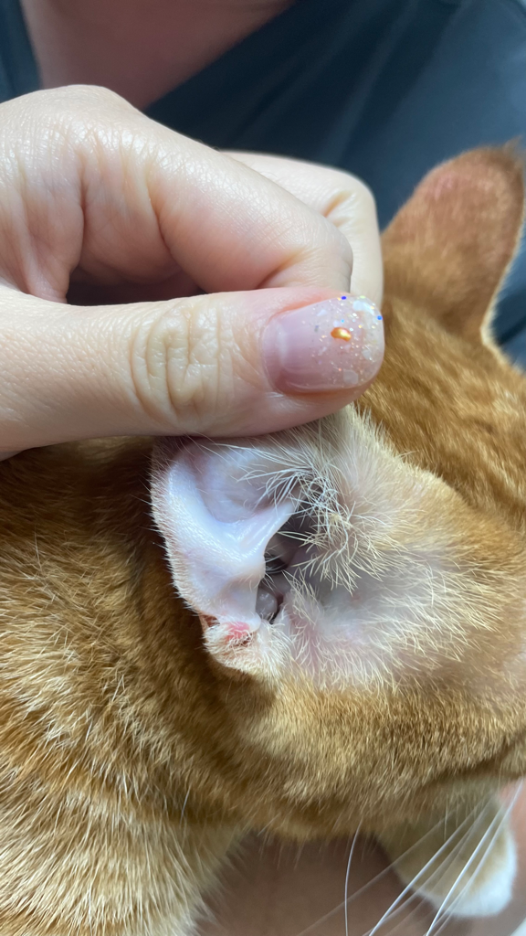 근래에 모기에게 노출된 적이 있는 것이 아닌가 생각이 듭니다 모기가 왕 달라 들어서 귀를 물었고 귀가 간지럽다 보니까 발로 자꾸 긁은 것이 아닌가 생각이 듭니다 큰 병은 아닌 것 같으니 걱정하지 마시고 병원에 데리고가 보시기 바랍니다 큰 문제는 없을 것으로 보입니다.