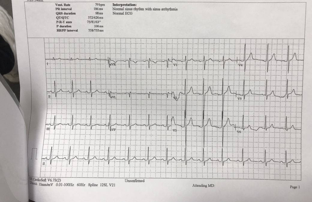 심박동수도 정상이며 부정맥이나 전도 이상 같은 것도 보이지 않습니다.