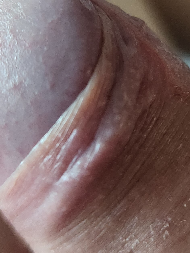 사진이 어두워서 명확하지는 않습니다만, 귀두 포피염 같습니다. 귀두 포피에 염증이 생긴 것이라서 항생제 연고 바르시고 평소에도 포피 내를 잘 씻어 주고 말리시면 없어질 겁니다.