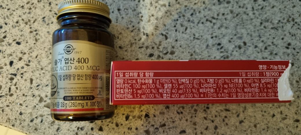 - 아내: 엽산 400, 오메가3, 비타민D 1000IU