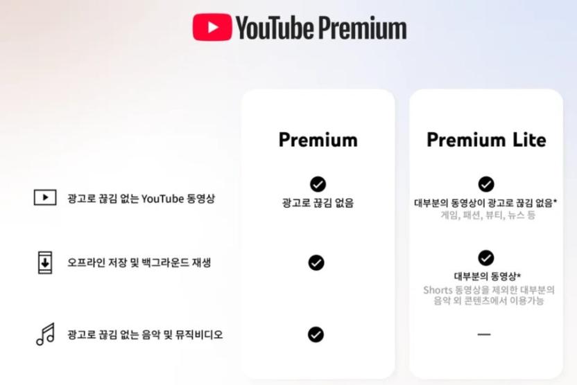 유튜브 프리미엄 라이트 요금제는 이름때문에 오해하기 쉬운데 기존 프리미엄처럼 광고가 완전히 없어지는 서비스는 아닙니다.